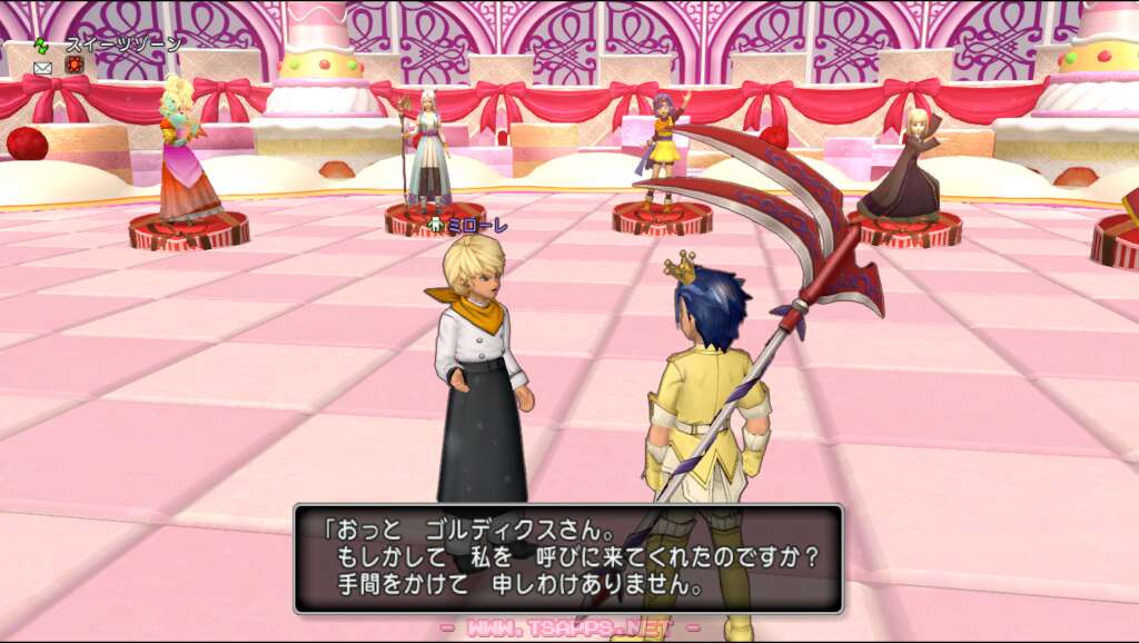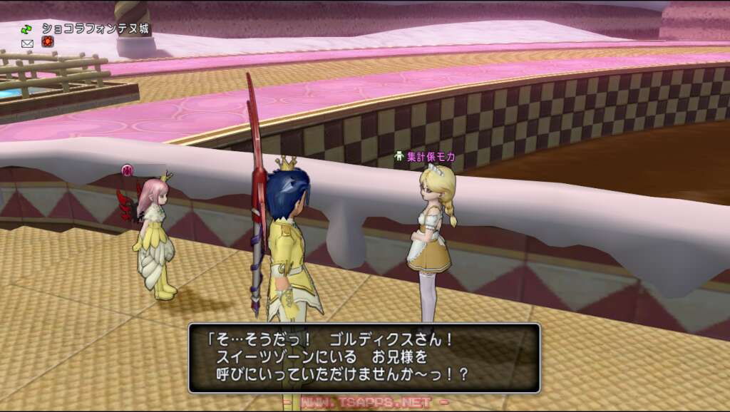 スイーツゾーンで発声練習をしているというミローレを呼びに行ってほしいと頼まれるので、近くにある旅の扉からスイーツゾーンへ移動。