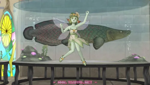 巨大水槽の前でジャンプ!妖精姿もなかなかお似合いです😄