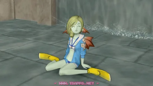 装備品は、お花のパーカー水着・ショート足ヒレ。