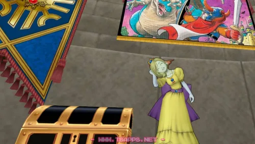 最後はインスタグラムにもアップしたこちらの写真。壁かけドラクエ1の下で「てれる」メリーナのお姿。