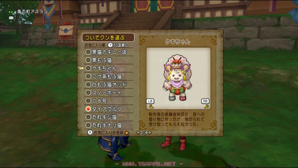 ここにいる玩具屋カルタに頼み、ケキちゃんカプセルを取り出してついてクンに追加してもらいます。ついてクン、色々増えたなぁ~♪