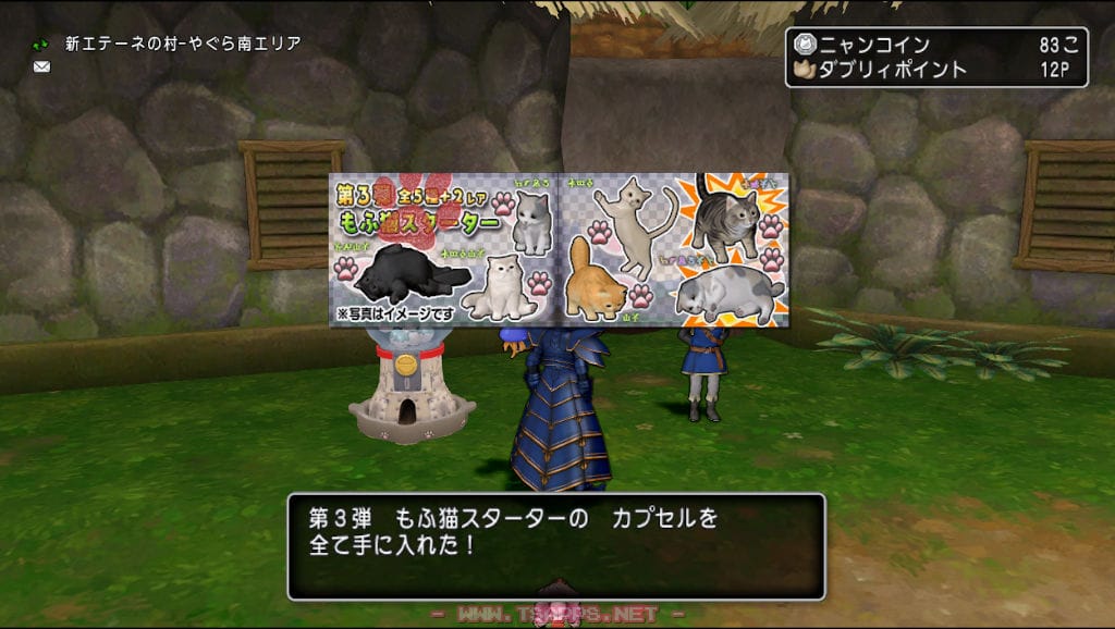 まだコンプしきれていないガニャポンのカプセルがあるので、新エテーネの村へも行ってきましたよ~。