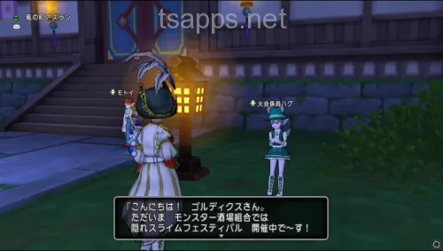 各町の酒場前に、隠れスライムフェスティバルの大会係員キャラが立っていますので、まずはそこへ向かいます。