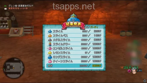 エンゼルスライムが1000ポイント~、キングスライムが3000ポイント、クイーンスライムが5000ポイント手に入ります。