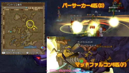バーサーカーは4匹、マッドファルコンは6匹です。後ろの括弧内に書かれているアルファベットは、エモノ呼びで呼ぶ際の数を示すアルファベットですね。4匹だとバーサーカーDまでいけばクリア、という意味です。