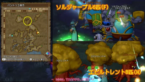 ソルジャーブル6匹、エビルトレント8匹をちゃちゃっと退治します。