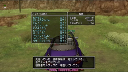 これで全てのターゲット討伐が完了!あとは現代に戻って報告すれば、バントリユ地方の調律クエストはクリアとなり、経験値200564ポイントと10000ゴールドが手に入ります☆