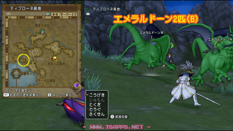 トロルのいるエリアから北西へ進んだ場所にいるのが、次のターゲットとなるエメラルドーン。たったの2匹で完了なのですぐ終わりますね!