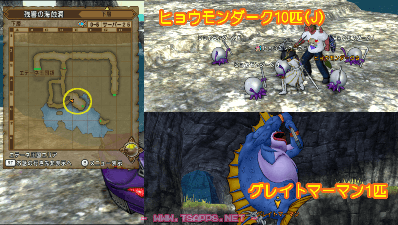 移動した先から今度は南へ向かって移動しながらターゲットモンスターを倒していきます。この位置に3種類固まっているので楽ちんですね♪