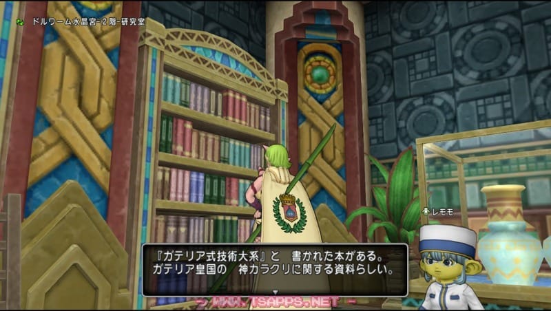 研究室の入口から見て左奥にある本棚を調べると「ガテリア式技術大系」という本が見つかります。この本を持ってガタラへ戻りますよ♪