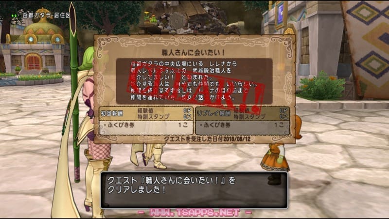 道具かばん・ドルボード・職人借り物の3クエストを終わらせ、ゴルディクス宅へ戻ってきました。ミラスタちゃんが8月12日に遊んだクエストはここまで♪連続で約1時間のプレイ時間でした。