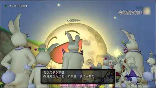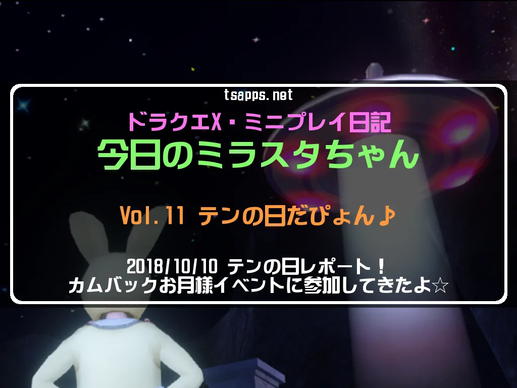 ドラクエXのサブキャラ・ミラスタシアの不定期プレイ日記!昨日10/10のテンの日に合わせて始まったイベント、カムバックお月様に参加してきました♪お月サマーとダンスパーリィだぴょん🐰