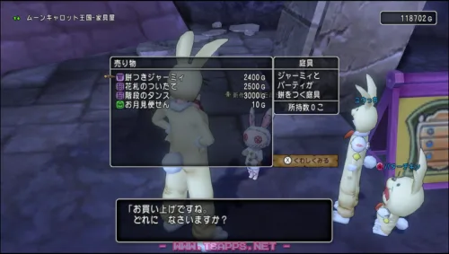 ムーンキャロット王国ではイベント限定の新作家具などを購入することができます。ほか、お月見だんごをアイテムと交換することもできますが、それはまた後で。