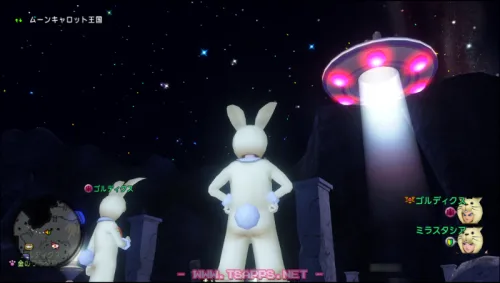 お月サマーの前で先ほど覚えたしぐさ「おそなえ」を行えば、月へ帰る気になってくれるのでこれで1匹終了。残り2匹も同じように探してしぐさをやるだけです。簡単ですね!