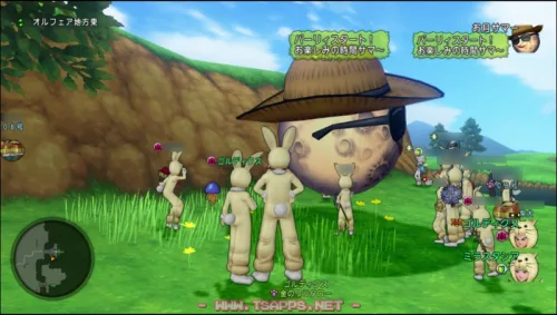 クエストを受けると、レンタル衣装のウサぐるみ衣裳・黄を着せられます。この衣裳を着た状態で依頼をこなす必要がありますよ☆