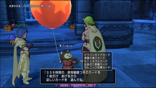 宝箱の手前にはテンの日限定のプーちゃん登場。好きなカードをもらうことができます。ミラスタちゃん単独では絶対に倒せないモンスターばかりですが、とりあえずSジェネラルカードをゲット☆