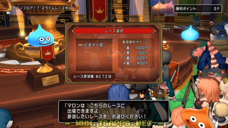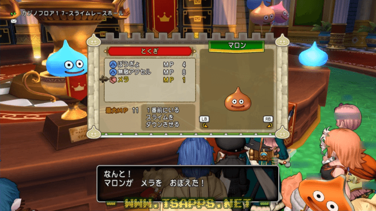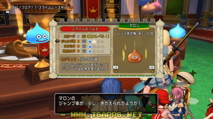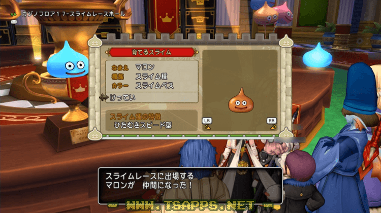 スライムレースに参加するスライムは、仲間モンスターのスライムとは違うので、誰でも気軽に参加することができますよ。