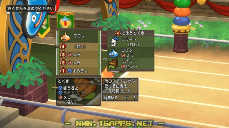 スライムは「ひたむきスピード型」、スライムナイトは「そつなきバランス型」、バブルスライムは「はちゃめちゃイタズラ型」、スライムつむりは「のんびりマイペース型」となっています。