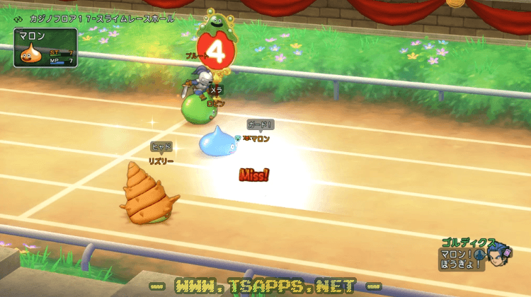 オートマッチングで選ばれる相手と、4人で対戦するスライムレース!対コンピュータのレースと違い、さくせん設定がなかなか難しいです。