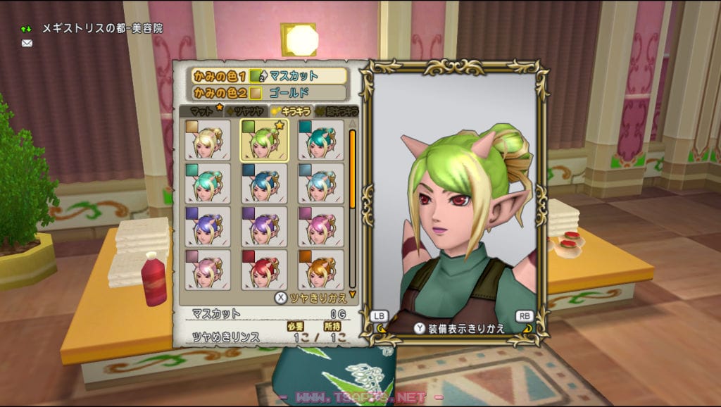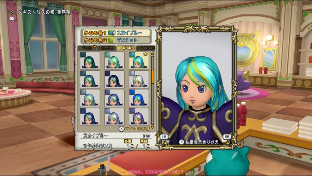 こちらがこれまで使ってきたパルフィの髪型。水色ベースは同じで、ラベンダー色の部分を今回はマスカットにしてみました。