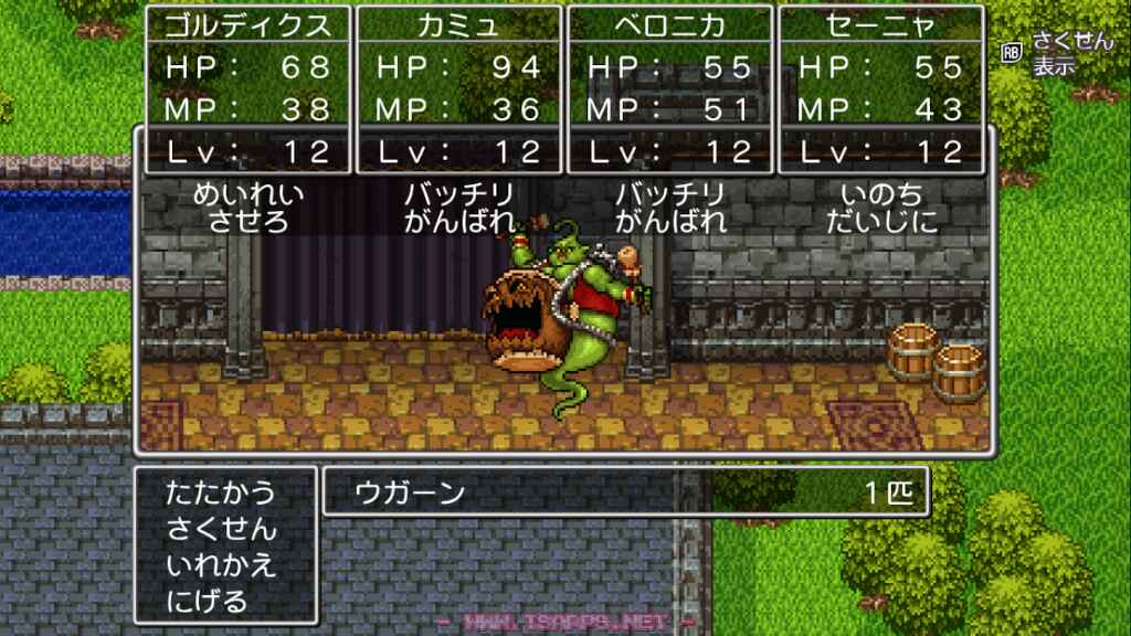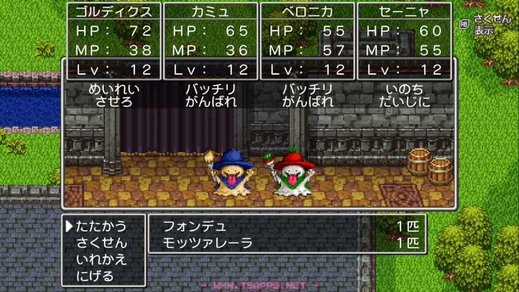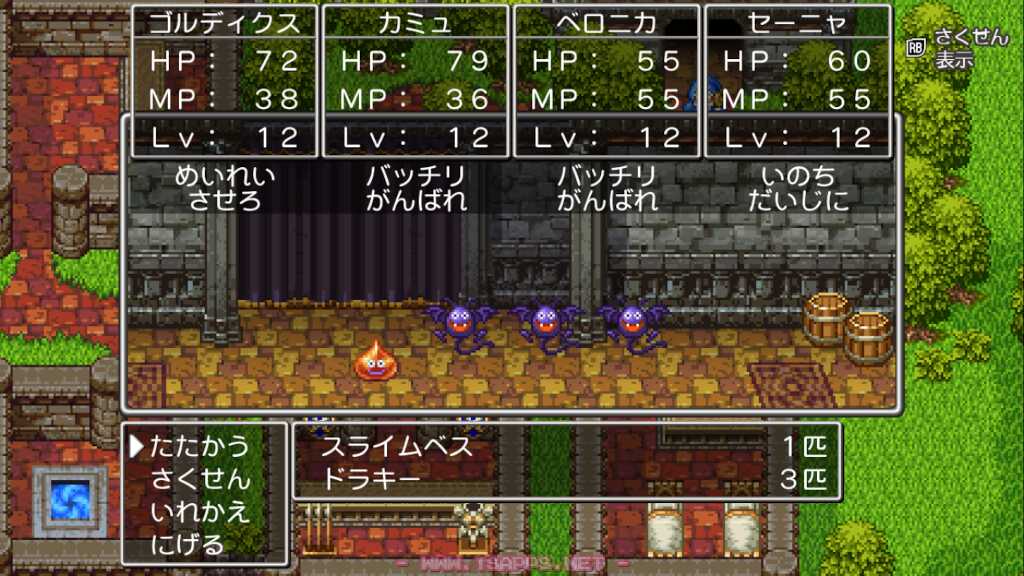 しかも町の中を歩いているとモンスターまで出現!それほど強いモンスターはいませんが、勇者たちのレベルもまだまだ低いので油断はできません。
