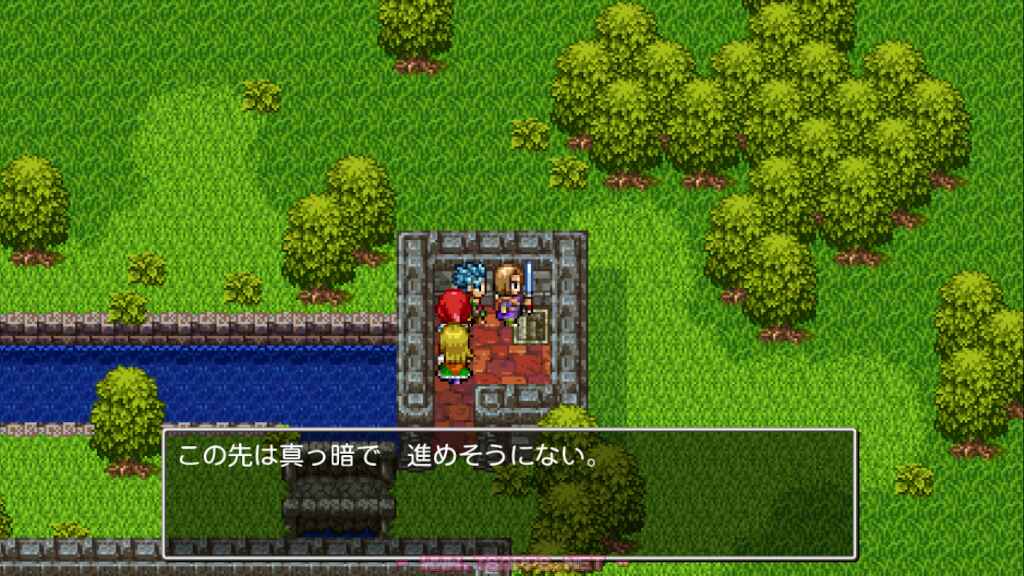 なお、ガライの墓へと続く階段は、先が真っ暗なので下りることができません。たいまつを持ってないですからね~。レミーラの呪文も使えないし😅