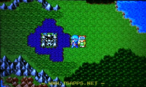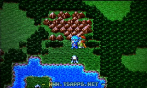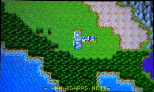 ムーンペタの町を出たあと、橋を渡って南へ。その後は西へと進みます。途中には強敵がウヨウヨいますが、もちろん逃げまくりです。より細かい間隔で中断セーブしないと、すぐ全滅してしまいます♪