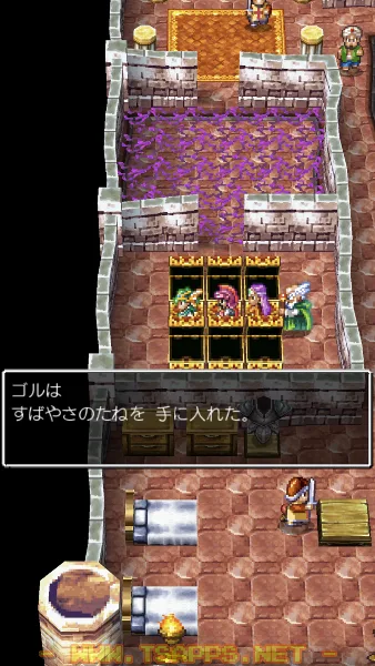 東側の小さな部屋にある右側のタンスからは「かしこさのたね」が手に入ります。すぐ横に人がいますね。