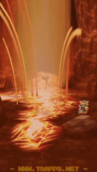 すると杖の下から地面が割れていき、熱そうなマグマが噴き出してきました!もの凄い勢いで一気に岩を溶かしていきます。