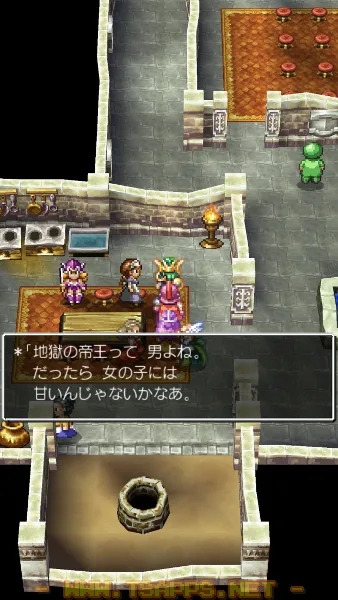 まずはいつものように1階の探索から始めます。台所のある部屋では「地獄の帝王って男よね。だったら女の子には甘いんじゃないかなあ。」という話が聞けます。これってピサロとロザリーのことですね♪