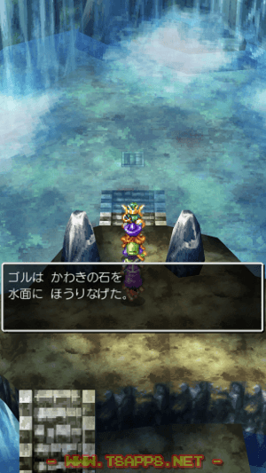 しかしよく見ると階段は水の中に沈んでいます。このままでは進めないので、かなり前に手に入れた「かわきの石」を使い、階段の周囲を干上がらせて先に進みます。