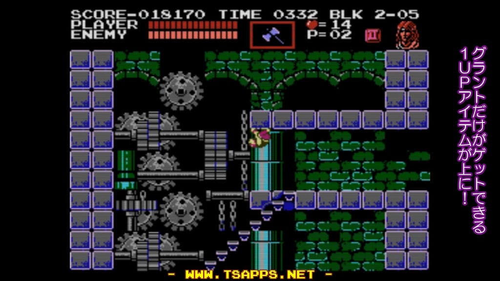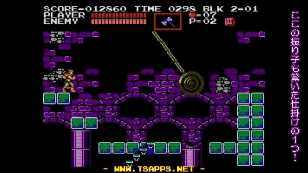 悪魔城伝説に搭載された特殊チップのおかげで表現できたという、この巨大な振り子。