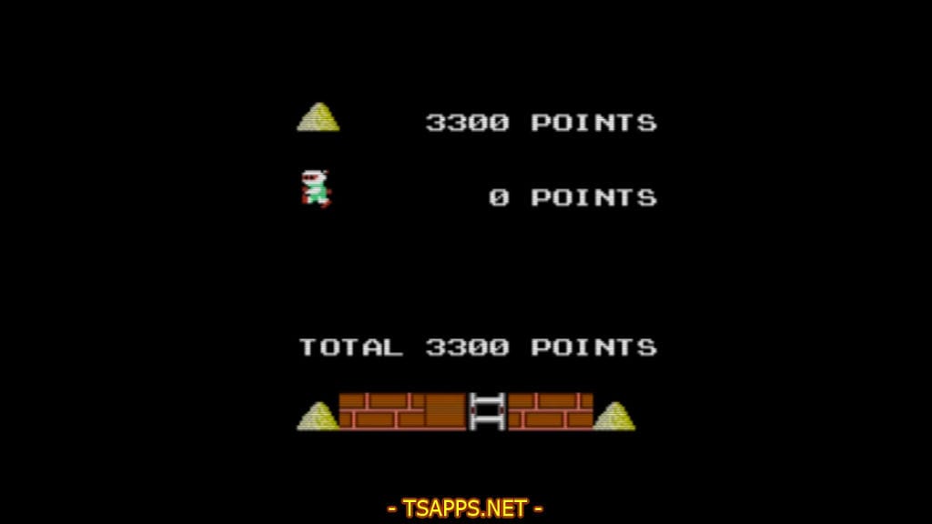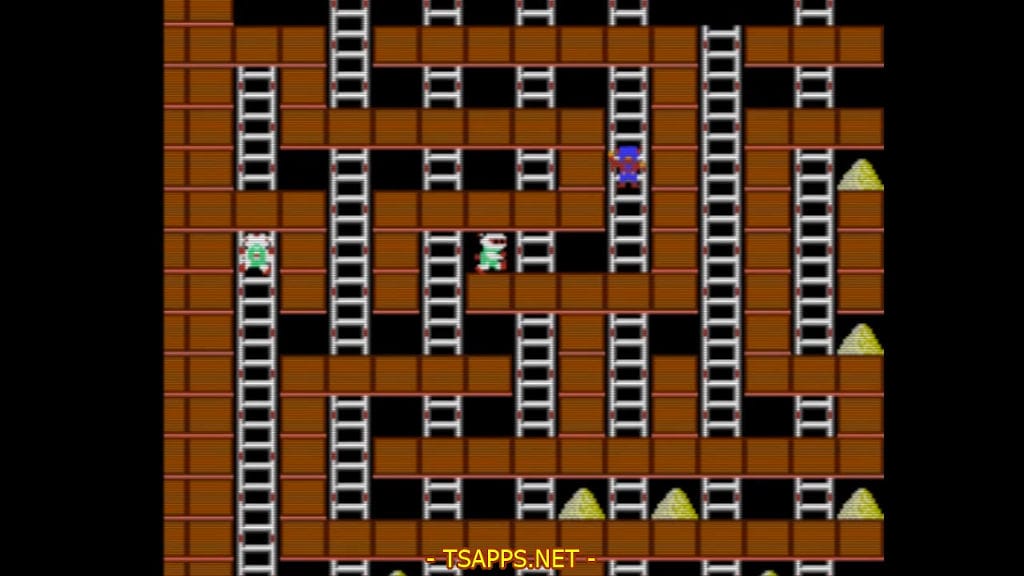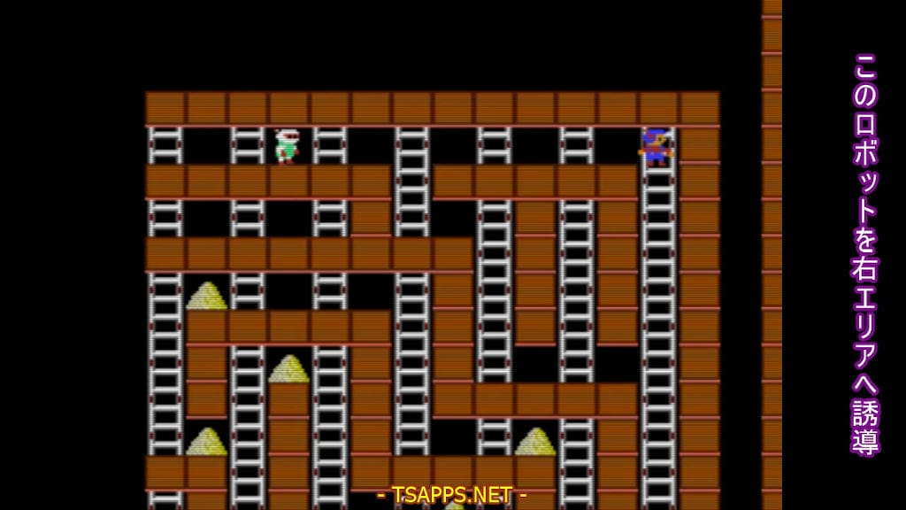 見ての通り穴を掘れるレンガは無し。脱出ハシゴは右下に出現しそうな雰囲気ですが、実際は左上に出るので、最後に間違えて右下へ向かわないように♪