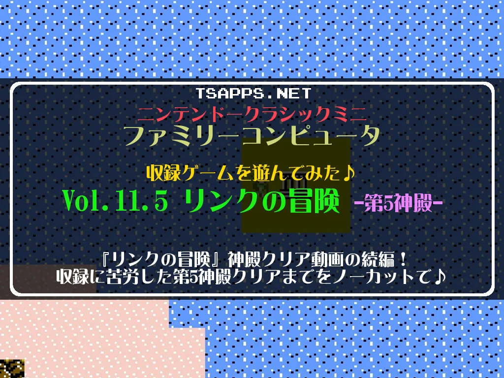 現在プレイ日記の方でも連載中の「リンクの冒険」を、クラシックミニファミコンでも動画紹介がてらプレイする「神殿クリア動画」シリーズ第5弾!