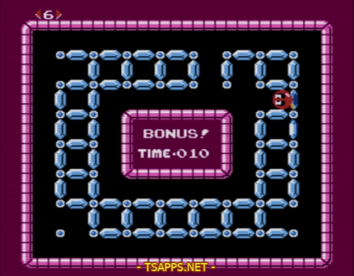 フィールドには金塊以外に、点数アイテムのフルーツや、タイマーを一時的に停める時計、1UPできるフラッグなども隠れています。