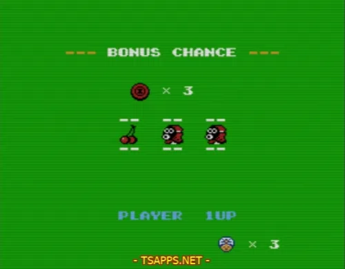 ステージ途中でコインを手に入れておくと、クリア後にコインの枚数だけスロットにチャレンジできます。絵柄が揃うと1UP~5UP!チェリーを揃えるのがオススメ♪