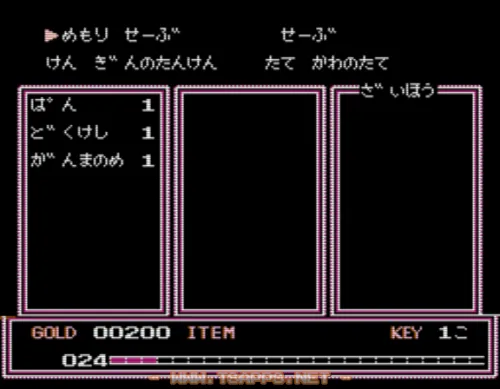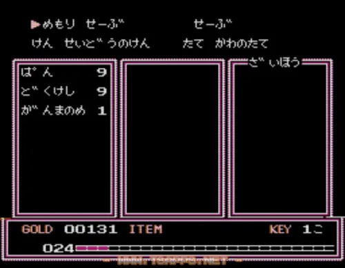 敵を倒すと袋を落としていきます。中にはお金「もる」が入っていたり、回復アイテムが入っていたりしますが、時々「よみのはな」という毒を喰らう罠もあるので注意!