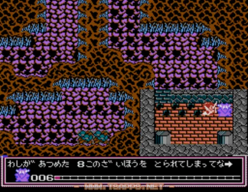 最後は洞窟の南東角にある、鍵のかかった部屋。ここにいるのがドッペル先生です。ただで薬はやれんぞ!というお約束の流れで、盗まれてしまった8個の財宝を魔物たちから取り返してほしい、と頼まれます。