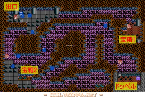 ドッペル先生の洞窟、全体マップは以下のとおり。画面数で数えたら4画面分なので、苦戦するようなマップではありませんね。