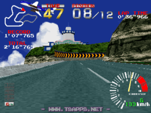 初代リッジレーサーは実にシンプルなシステムでした。初級・中級と上級・タイムトライアルは同じコースなので、実際にあるコースとしては2つ。